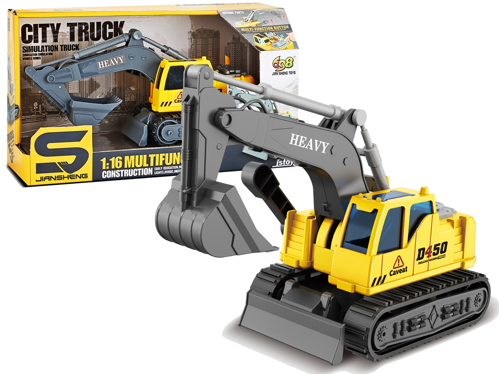 Friction Powered Caterpillar Excavator Bucket 1:16 Yellow Moving arm