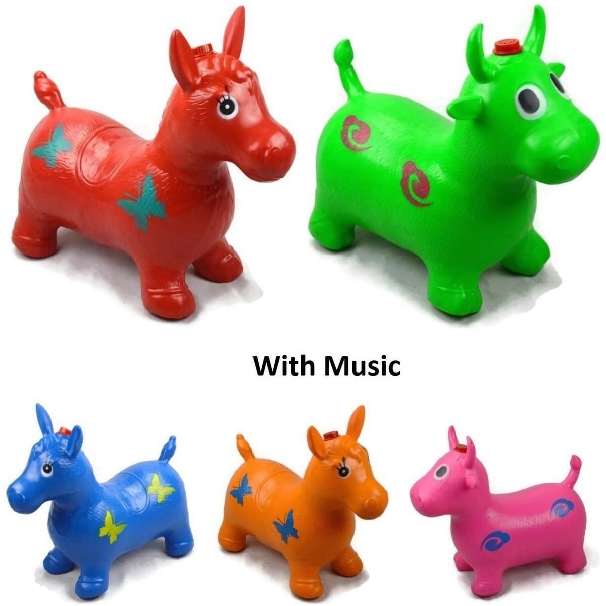 Kids Boys Girls Musical Space Bouncing Animal Hopper Inflatable Soft Rubber Toy Bounce Game(Random Color) (Horse) With Music